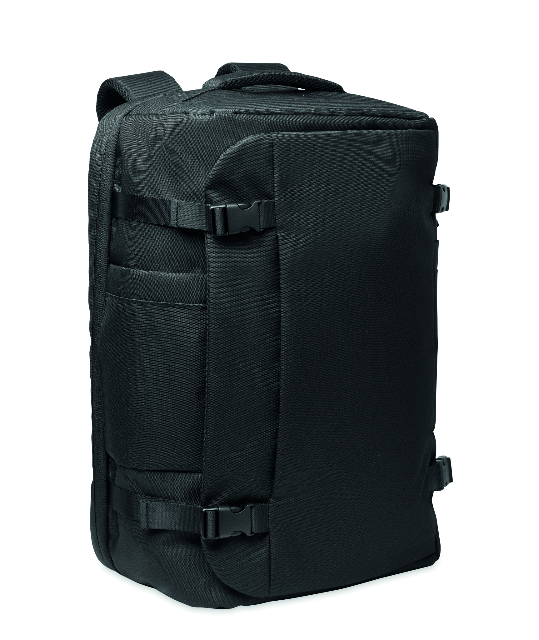 Großer 17'' Laptop-Reiserucksack aus 600D RPET-Polyester. Diverse Fächer mit Hauptfach für Kleidung, zwei gepolsterten Fächern für Laptop und Tablet und mehr. Gepolsterte Rückseite, Schultergurt und Tragegriff.