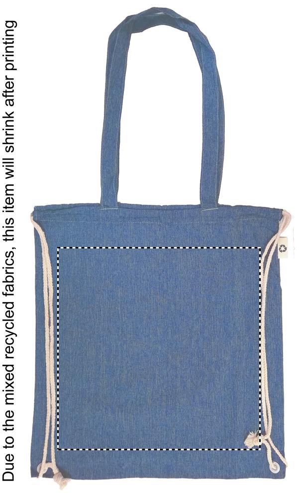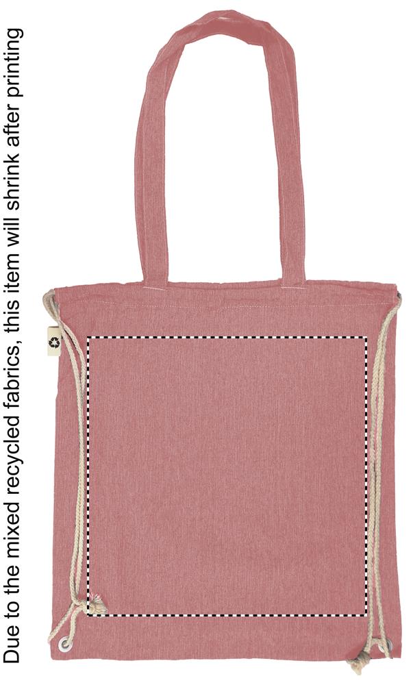 2 tone (recycelte Baumwolle und recyceltes Polyester) Einkaufstasche mit Kordelzug und langen Henkeln (20%/80%). ca. 140 gr/m². Dieser Artikel kann nach dem Bedrucken schrumpfen.