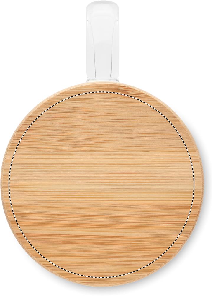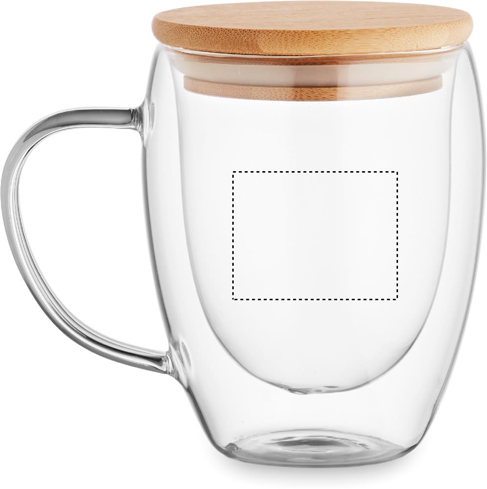 Doppelwandiges Borosilikatglas mit Henkel. Deckel aus Bambus. Füllmenge: 250 ml.