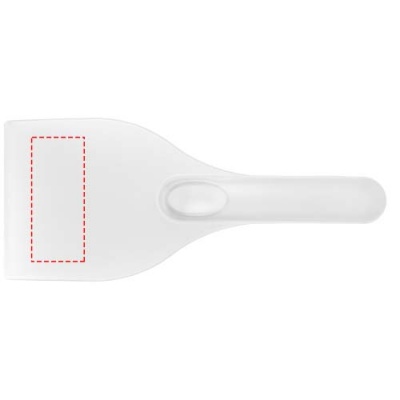 Einfacher Windschutzscheibenkratzer mit großer Werbeanbringungsfläche. Der starke Griff sorgt dafür, dass genügend Druck ausgeübt werden kann, um das gesamte Eis von der Scheibe zu entfernen. Hergestellt in Großbritannien aus recyceltem Kunststoff. Der Eiskratzer hat aufgrund der Beschaffenheit des recycelten Materials eine gesprenkelte Oberfläche.