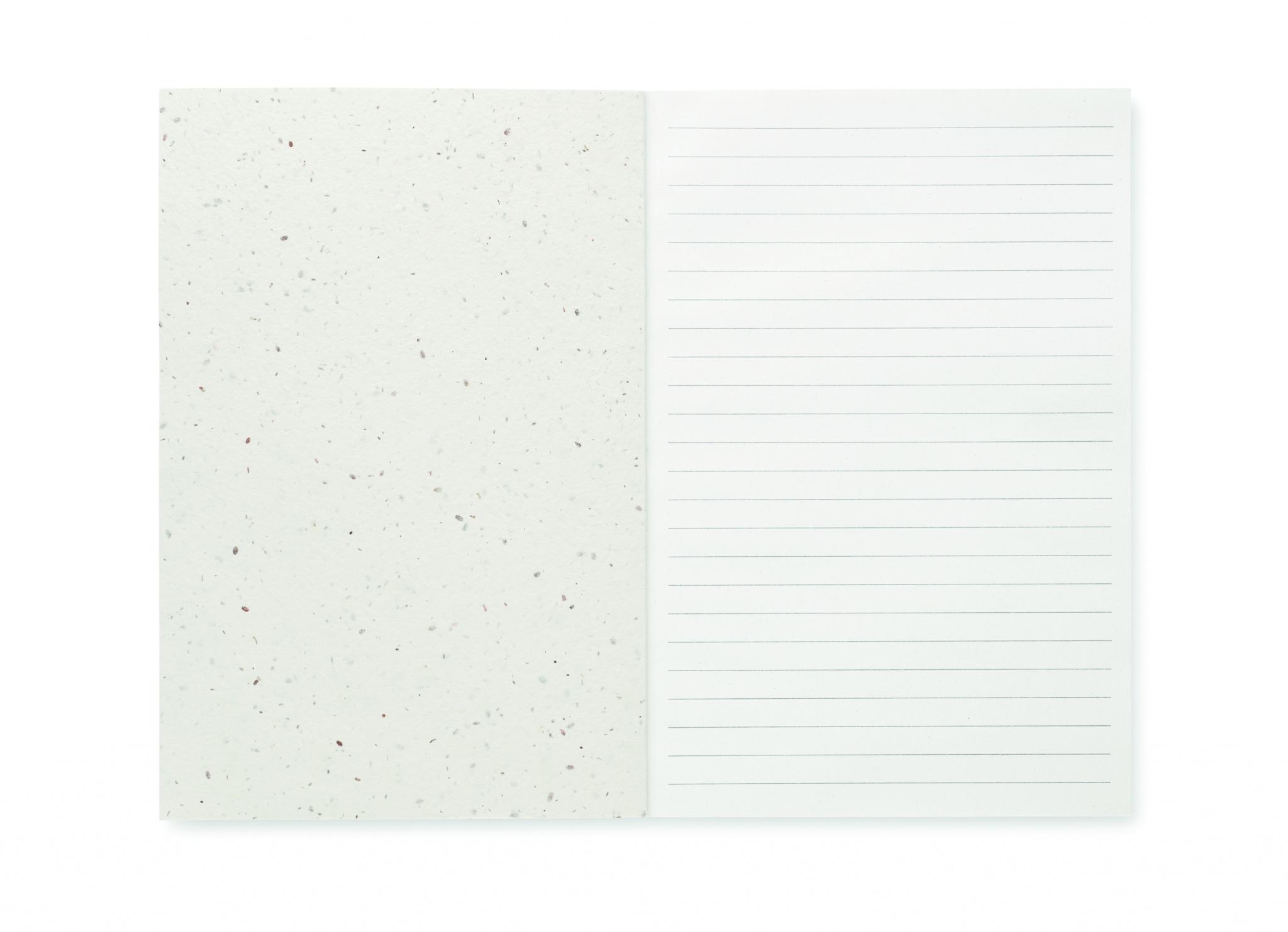 DIN A5 Notizbuch mit Cover aus Samenpapier. 100 Blatt (200 Seiten) liniertes Recyclingpapier.