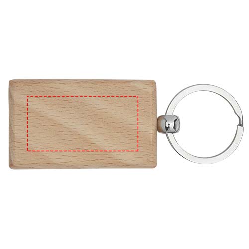 Rechteckiger Schlüsselanhänger aus Buchenholz, geliefert in einem braunen Umschlag aus recycletem Kraft-Papier. Die Größe des Schlüsselanhängers beträgt 5,5 x 3,5 cm. Hergestellt für Lasergravur.
