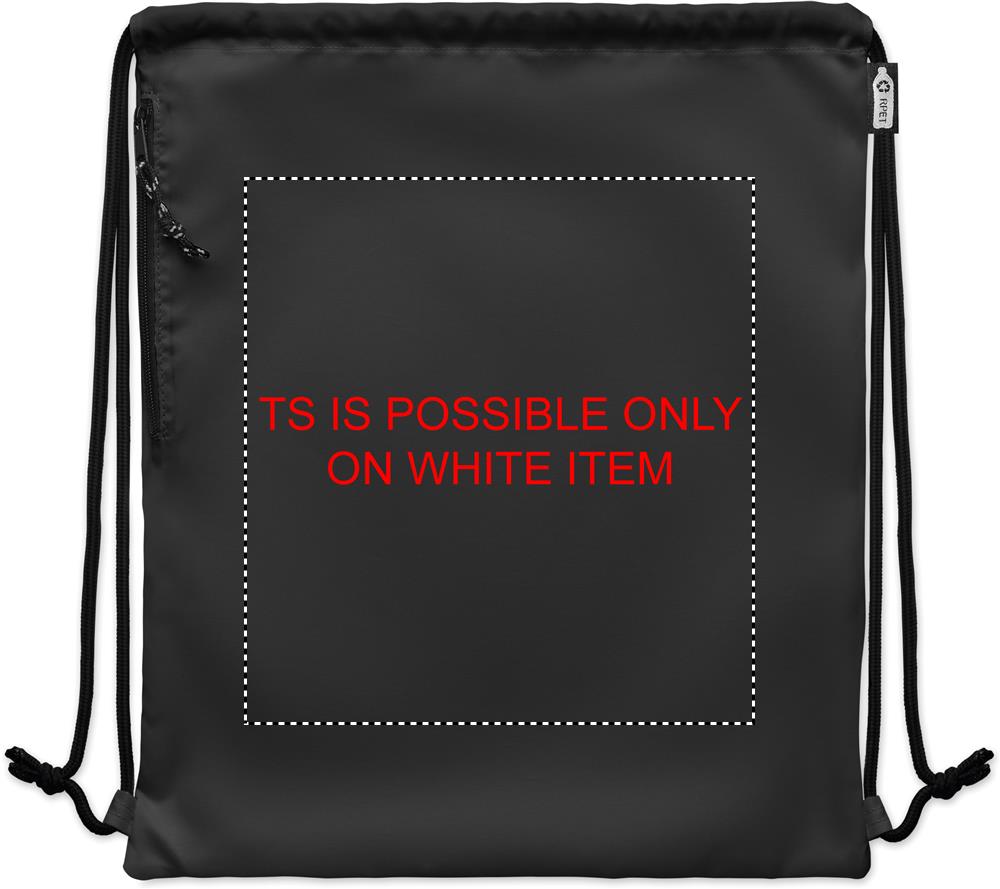 Großer Beutel mit Kordelzug. Seitliche Reißverschlusstasche. 300D RPET-Polyester