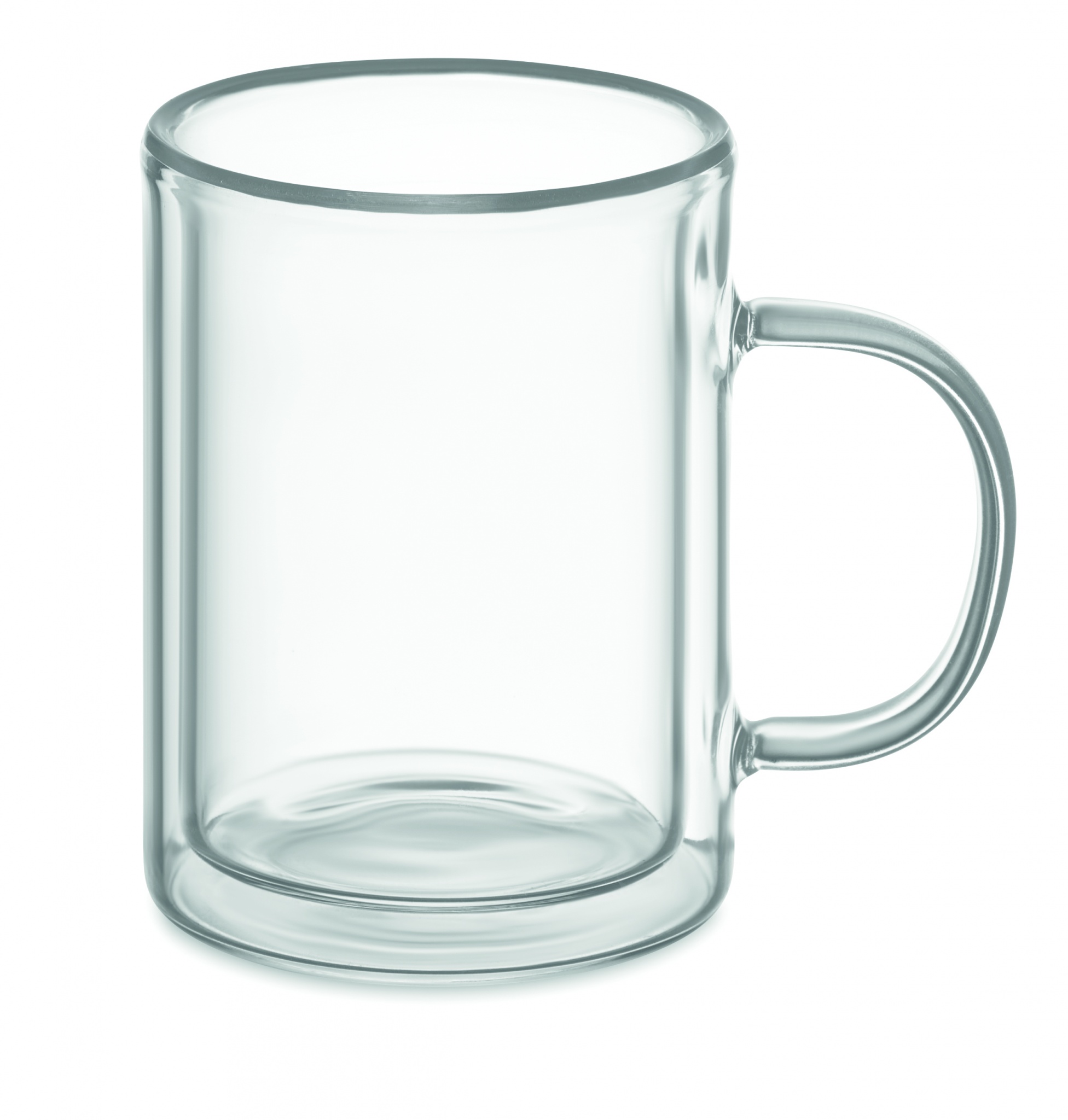 Doppelwandiger Kaffeebecher aus Glas. Aufgrund spezieller Beschichtung geeignet für Sublimationsdruck. Füllmenge: 225 ml.