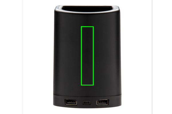 Laden Sie Ihr QI-fähiges Smartphone mit diesem einzigartigen Schreibtisch-Accessoire und bieten Ihren Stiften ebenso einen angestammten Platz. Ihr Logo wird nach der Gravur und sobald der Stiftehalter angeschlossen ist von hinten beleuchtet. Kompatibel mit allen QI-fähigen Smartphones, wie den Androids der neusten Generation und für iOS ab dem iPhone 8. Ebenso mit 2 USB-Ports zum herkömmlichen Laden per Kabel ausgestattet. Input: 5V/3A. USB Output: 5V/1A. Wireless Output: 5V/1A 5W. Inkl. 150cm Micro-USB Kabel.