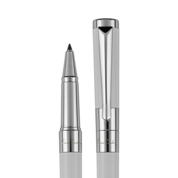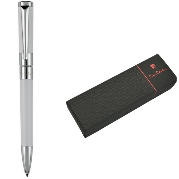 Der elegante und markentypische Kugelschreiber aus Metall von Pierre Cardin in Weiß mit silbernen Details. Der Stift hat einen Drehmechanismus und enthält eine hochwertige Mine in Blau mit einer Spitze von 1 mm. Er wird auch mit einer schwarzen Ersatzmine geliefert. Verpackt in einer luxuriösen Pierre Cardin-Box, mit Echtheitszertifikat.
