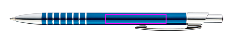 Schlanker Metall-Kugelschreiber mit blauschreibender Mine und gravierter Griffzone. Ihre Werbung gravieren wir unterhalb des Clips.