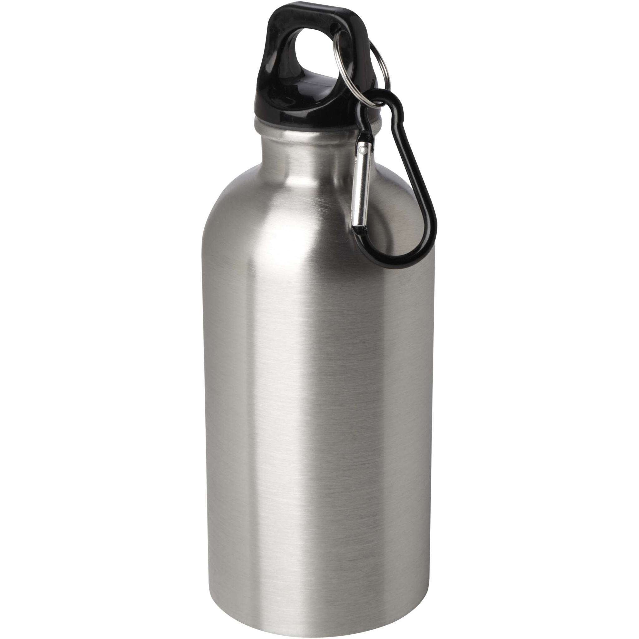 Mit dieser robusten und dennoch leichten 400 ml Trinkflasche aus RCS-zertifiziertem, recyceltem Edelstahl sind Sie immer gut mit Flüssigkeit versorgt. Sie ist der perfekte Begleiter beim Sport, auf Tagesausflügen oder im Büro. Die einwandige Oregon Flasche hat einen Drehverschluss und bietet viel Platz für ein Logo Ihrer Wahl. Der mitgelieferte Karabinerhaken (nicht zum Klettern geeignet) kann sicher an einer Tasche befestigt werden, damit die Flasche nicht verloren geht.