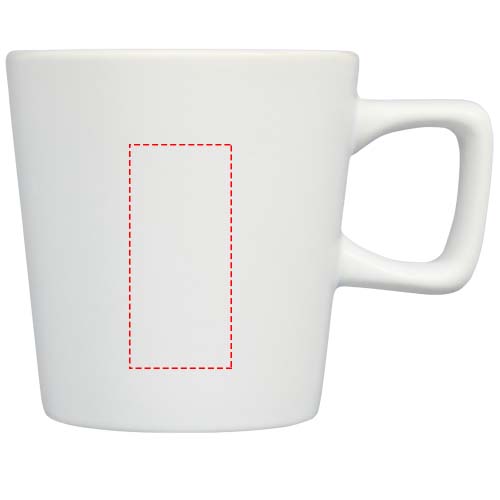 Keramiktasse mit modernem Design und matter Oberfläche Das Fassungsvermögen beträgt 280 ml. Spülmaschinenfest für alle Werbeanbringungsmethoden. Verpackt in einer Geschenkbox aus Recyclingkarton.