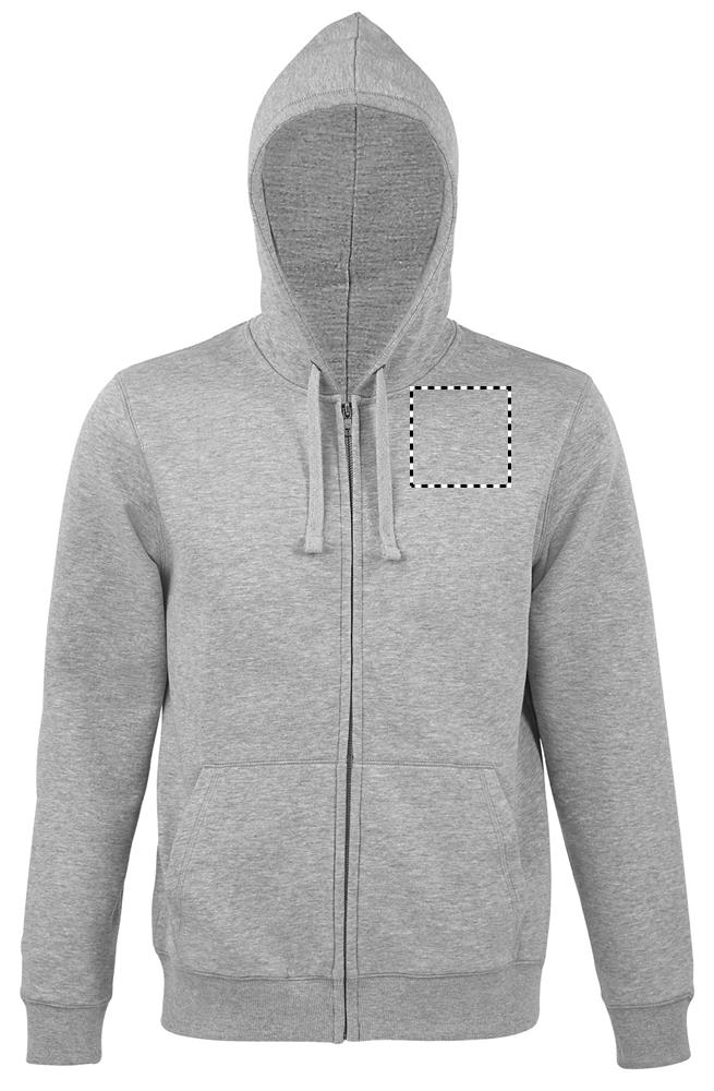 SOL'S SPIKE MEN. Herren Hoodie/Kapuzenjacke mit durchgehendem Reißverschluss. 80% ringgesponnene Baumwolle - 20% Polyester, angeraute Innenseite. Außen: 100% Baumwolle FLEECE 280 LSF (Low Shrinkage Fabric). Angesetzte Ärmel, 2 Känguru-Taschen auf der Vorderseite, geschnitten und genäht, Gefütterte Kapuze mit Ton-in-Ton-Kordelzug, Rippenbündchen am Saum und an den Ärmeln 2x2. Halbmondpasse auf der Krageninnenseite, Nackenband auf der Krageninnenseite, YKK-Reißverschluss. OEKO-TEX®. Verkauf nur mit Druck.