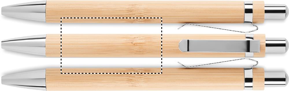 Langlebiger Druckkugelstift mit einem Schaft aus Bambus und glänzenden Details aus Chrom. Der Stift schreibt mittels Grafitspitze. Da Bambus ein natürliches Material ist, können Farbton und Maße pro Artikel variieren. Dies kann Abweichungen im Ergebnis der Veredlung führen.
