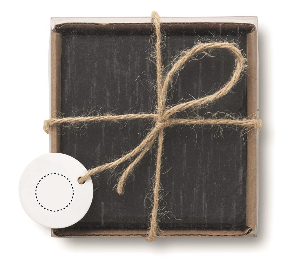 Set mit 4 Untersetzern. Schiefer mit EVA-Füßen auf der Unterseite.