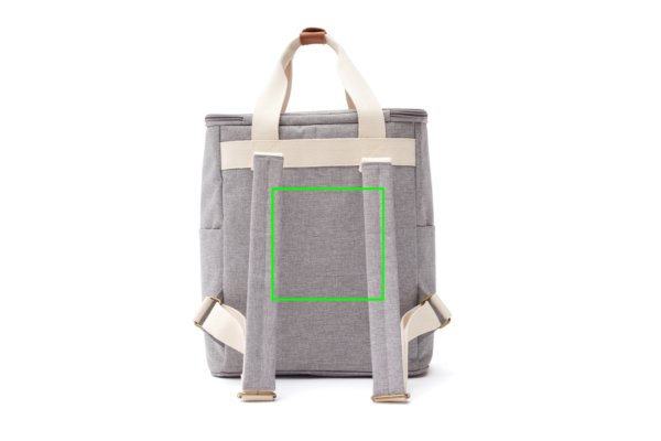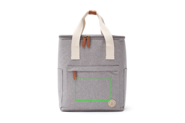 Kühlrucksack, der sich perfekt für große und kleine Ausflüge eignet. Der Kühlrucksack hat zwei Taschen an den Seiten und eine größere Vordertasche. Mit Details aus Kunstleder und Baumwolle. Der Kühlrucksack speichert die Kälte und durch die Öffnungsklappe auf der Oberseite haben Sie einfachen Zugriff auf den Inhalt. Auf der Innenseite der Öffnungsklappe befindet sich ein Netz mit Platz für einen Kühlakku, sodass Sie im oberen Teil des Rucksacks kühlen können und sich die Kälte im ganzen Rucksack verteilt. Durch die dicke EVAC-Polsterung hält der Kühlrucksack lange kalt. Darüber hinaus ist er nach Gebrauch einfach zu trocknen.