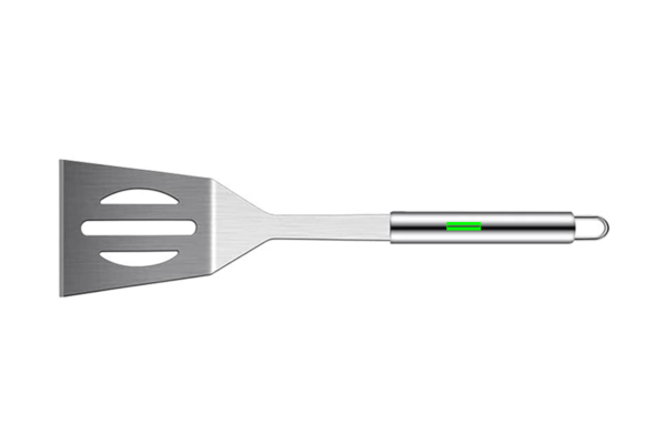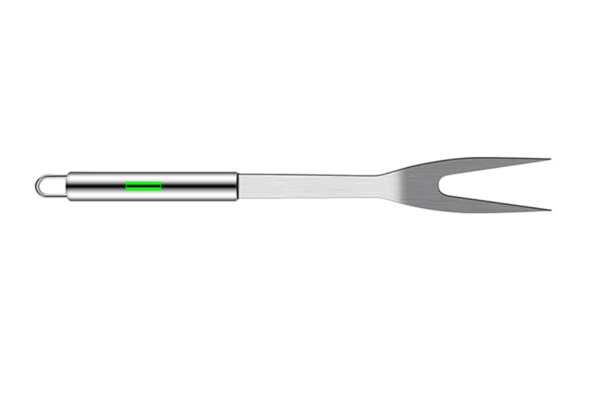 3 pcs stainless steel barbecue set including, spatula, carving fork with protection cover and pair of tongs, stainless steel handles. Packed in aluminium case with handle and hinges.
