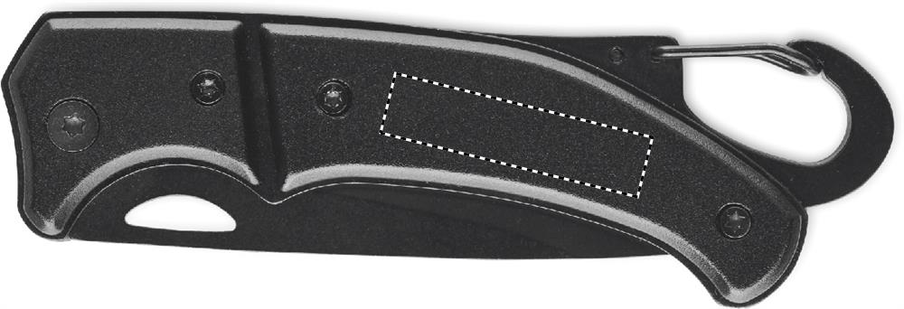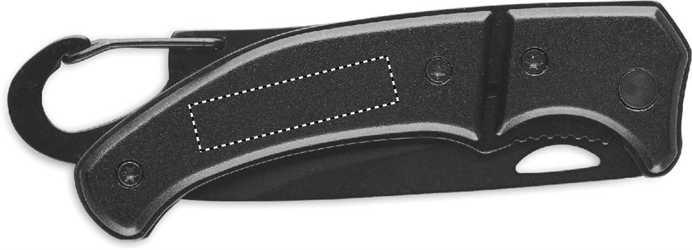 Aluminium foldable knife with carabiner. Blade in stainless steel. The carabiner is not for climbing (non-professional use).