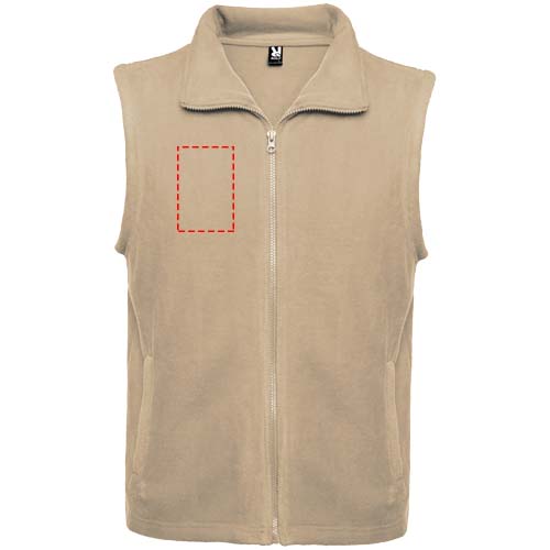 Fleece vest with polo neck and matching zipper. Side pockets with matching zipper. Removable label. The model is 185 cm and is wearing size M.