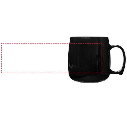 Durable, single-wall plastic mug. Volume capacity is 300 ml. Made in the UK.