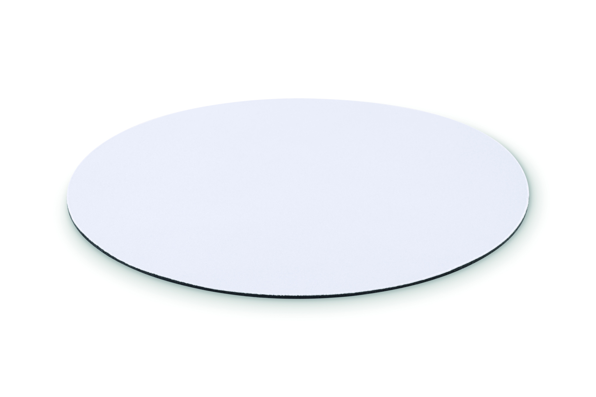 Computer mouse mat for sublimation with polyester surface and rubber on the base to prevent slipping. Diameter 21cm.