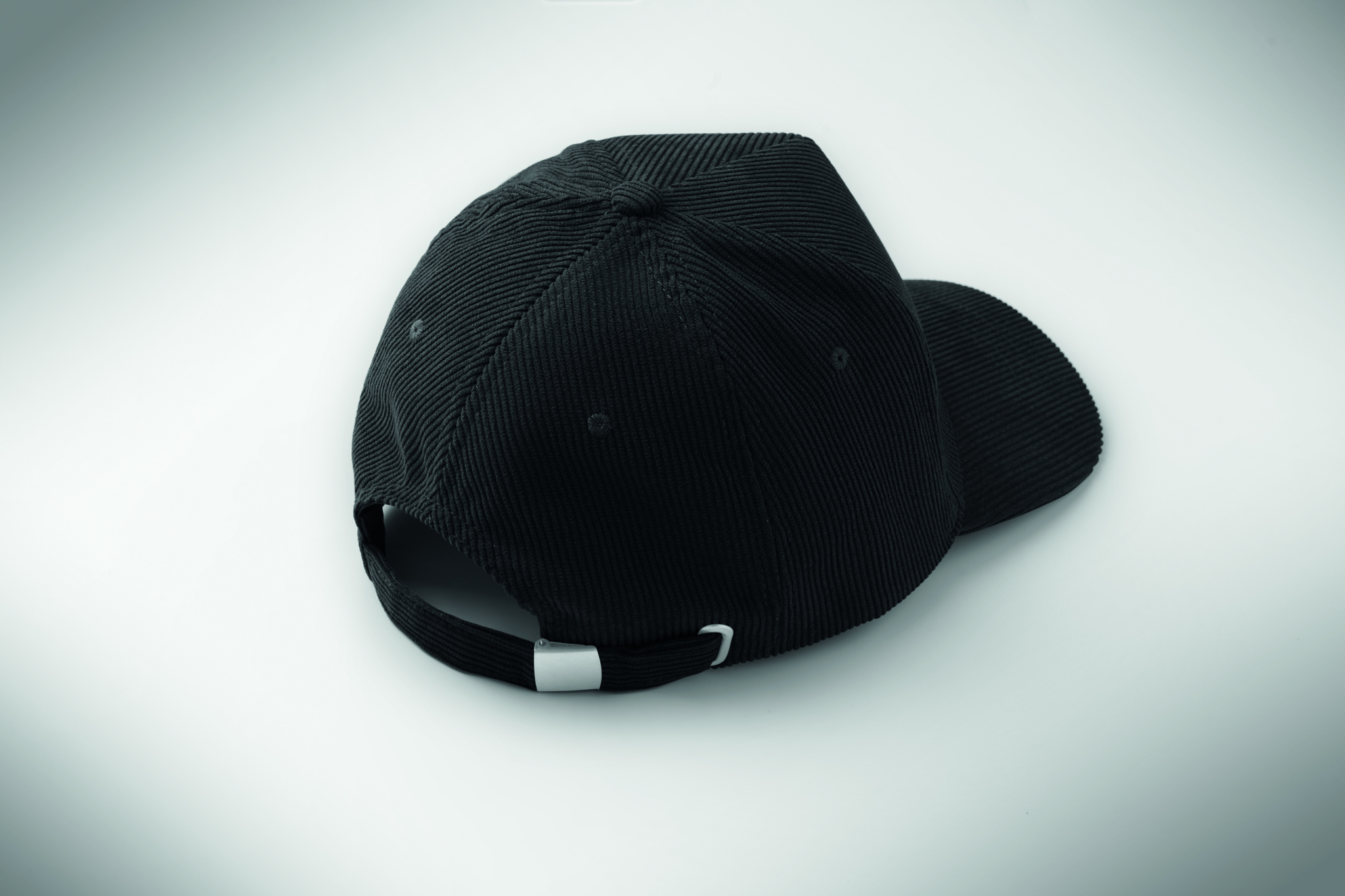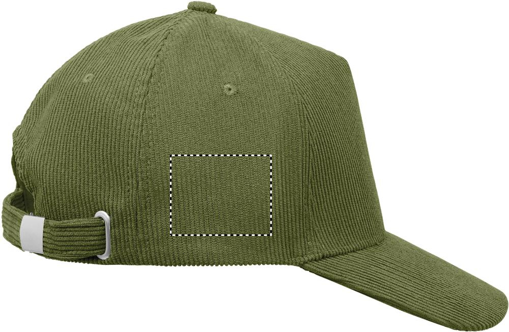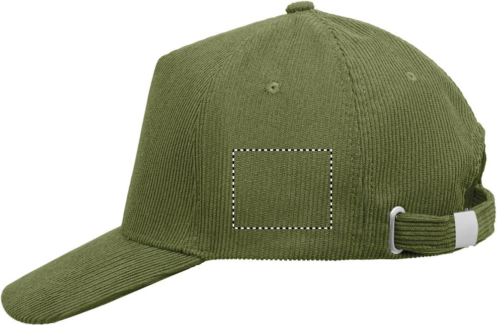 5 panel baseball cap in polyester corduroy with adjustable metal buckle closure. 220 gr/m².