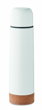 Double wall vacuum insulated flask in recycled stainless steel (90% recycled stainless and 10% stainless steel) with cork detail base. Leak- free. Capacity: 500 ml.