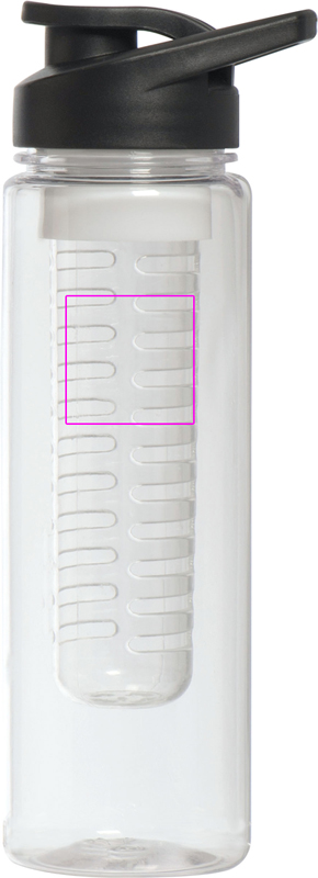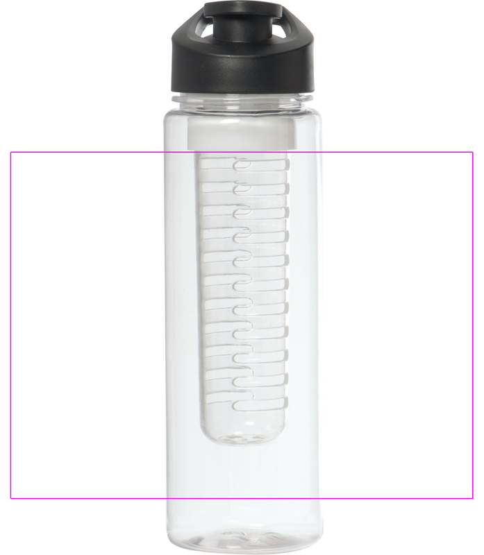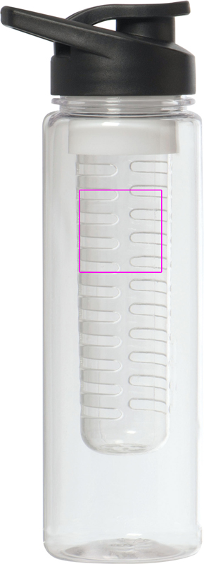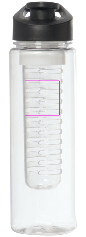 Large, leak-proof drinking bottle BPA-FREE (capacity 700 ml) with removable fruit insert. In the lid is a large drinking opening with closure and a carrying handle integrated. We print your logo on the bottle.