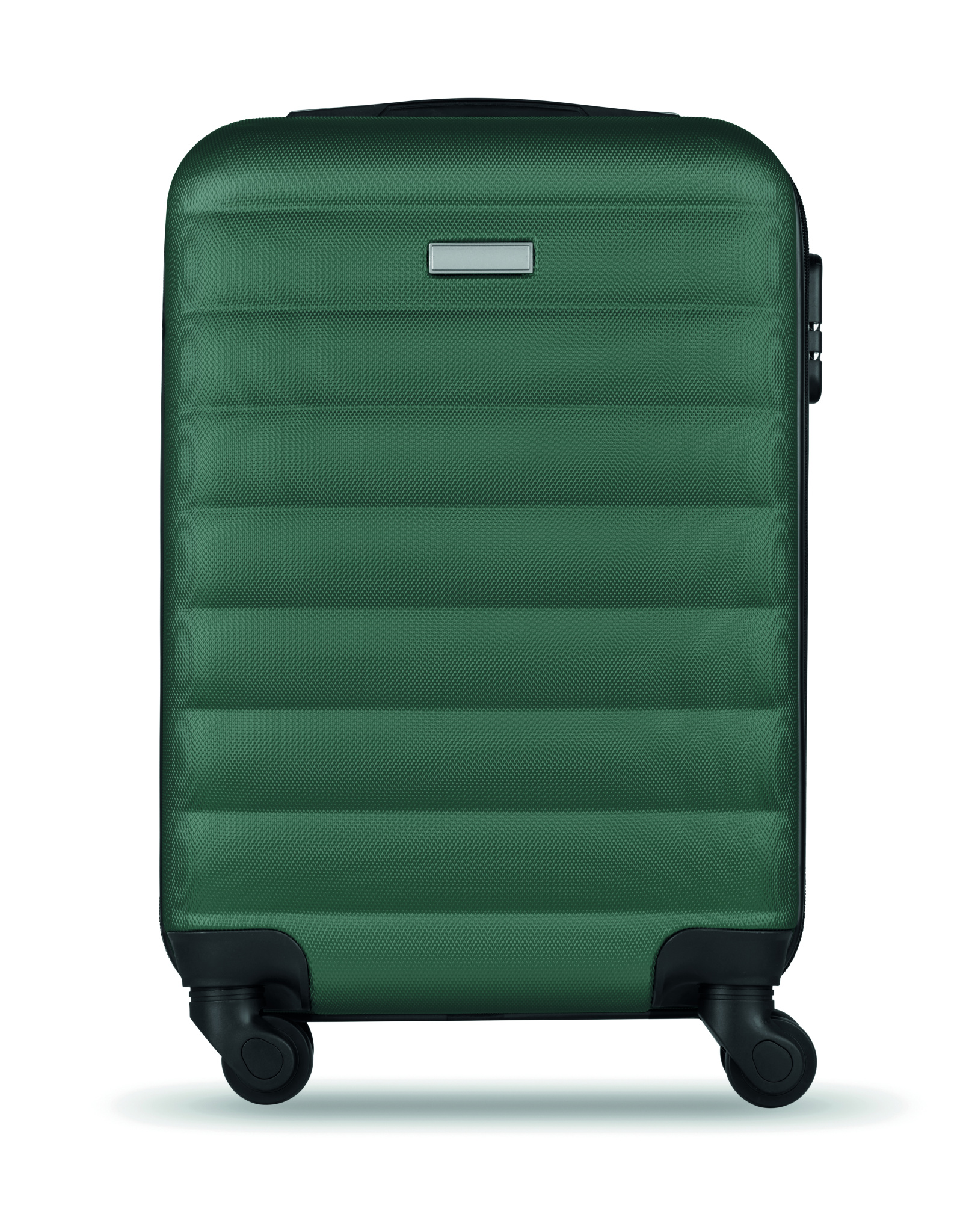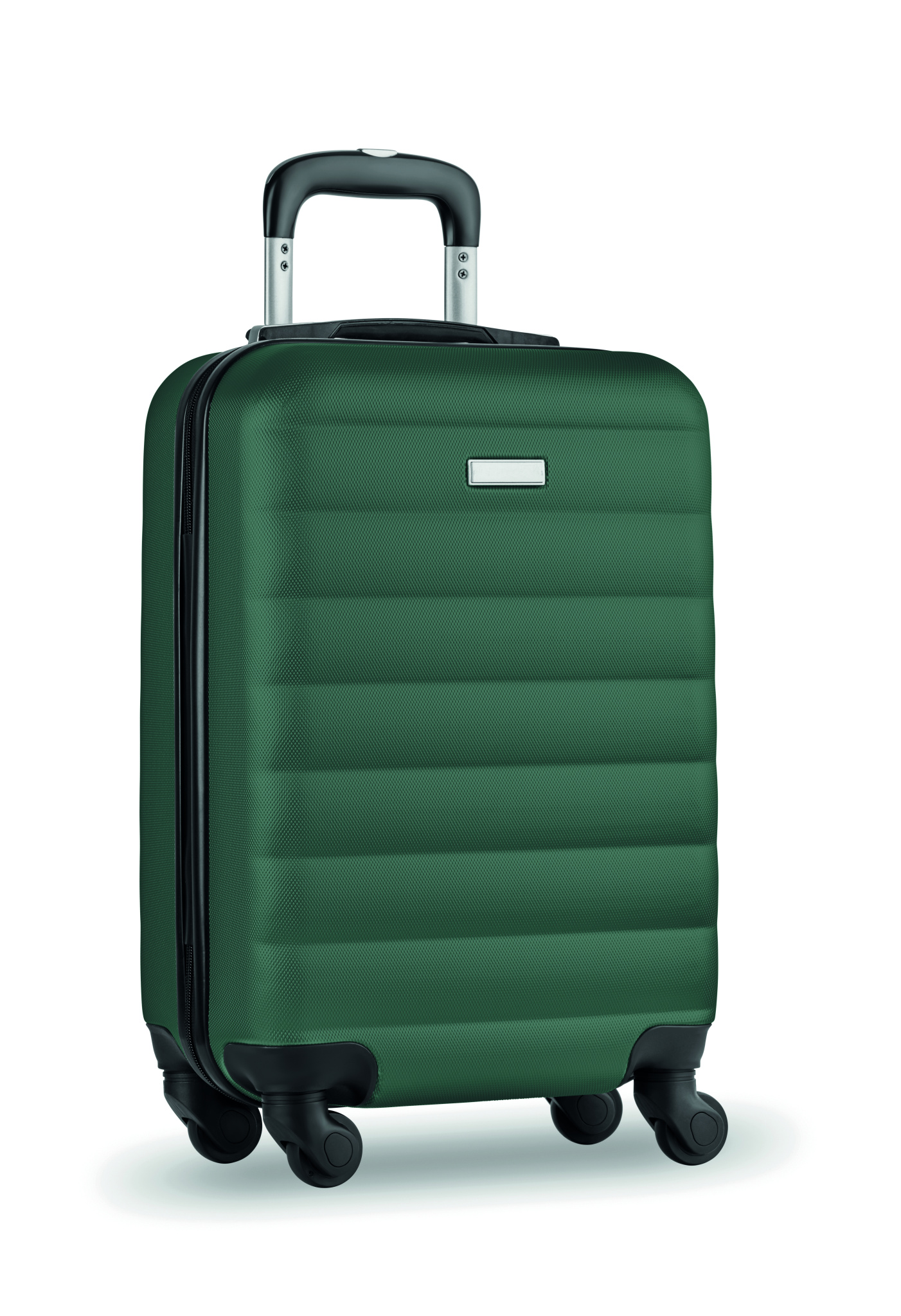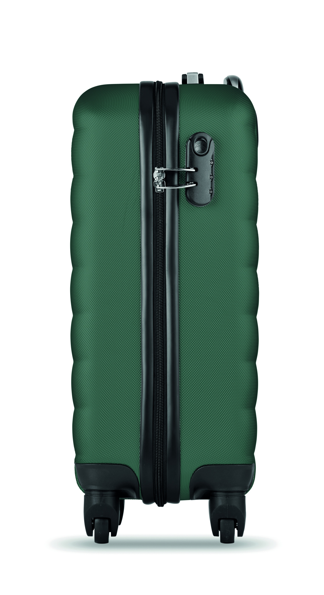 20 inch hard-shell trolley in ABS. 1 main compartment and inner compartment. Includes a security lock. Rides on 4 wheels.