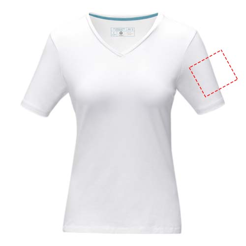 The Kawartha short sleeve women's organic V-neck t-shirt is a stylish and sustainable choice. Made from 95% organic cotton, with a fabric weight of 200 g/m², this t-shirt is not only good for the environment, but also soft and comfortable to wear. The 5% elastane ensures a soft and stretchy fit. With its V-neck and short sleeves this t-shirt is both sustainable and modern.