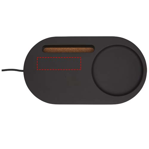 5W wireless charging desk organizer made of a combination of natual limestone and cork. To charge a device without wireless technology, an external wireless charging receiver or receiver case is required. Packaged in a gift box and delivered with an instruction manual (both made of sustainable material). Includes a 100 cm USB cable.