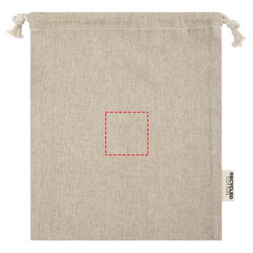 Gift bag made of GRS certified recycled cotton with cotton drawstring closure. Ideal for gifting or storing items. Size: 25 x 30 cm. There may be minor variations in the colour of the actual product due to the nature of the production process.
