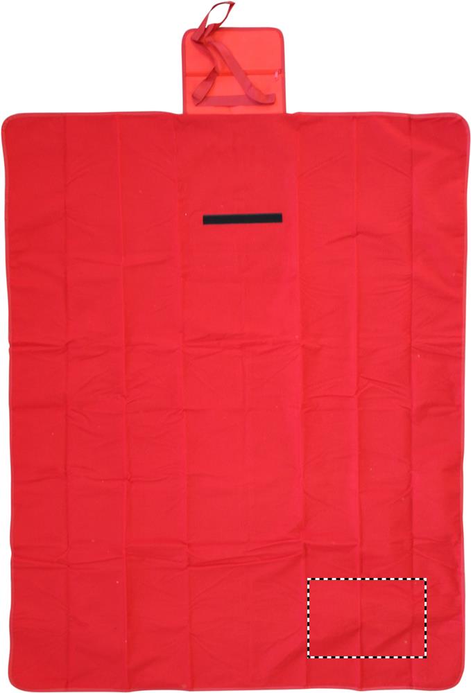 Foldable fleece blanket with plastic coated PEVA reverse side.