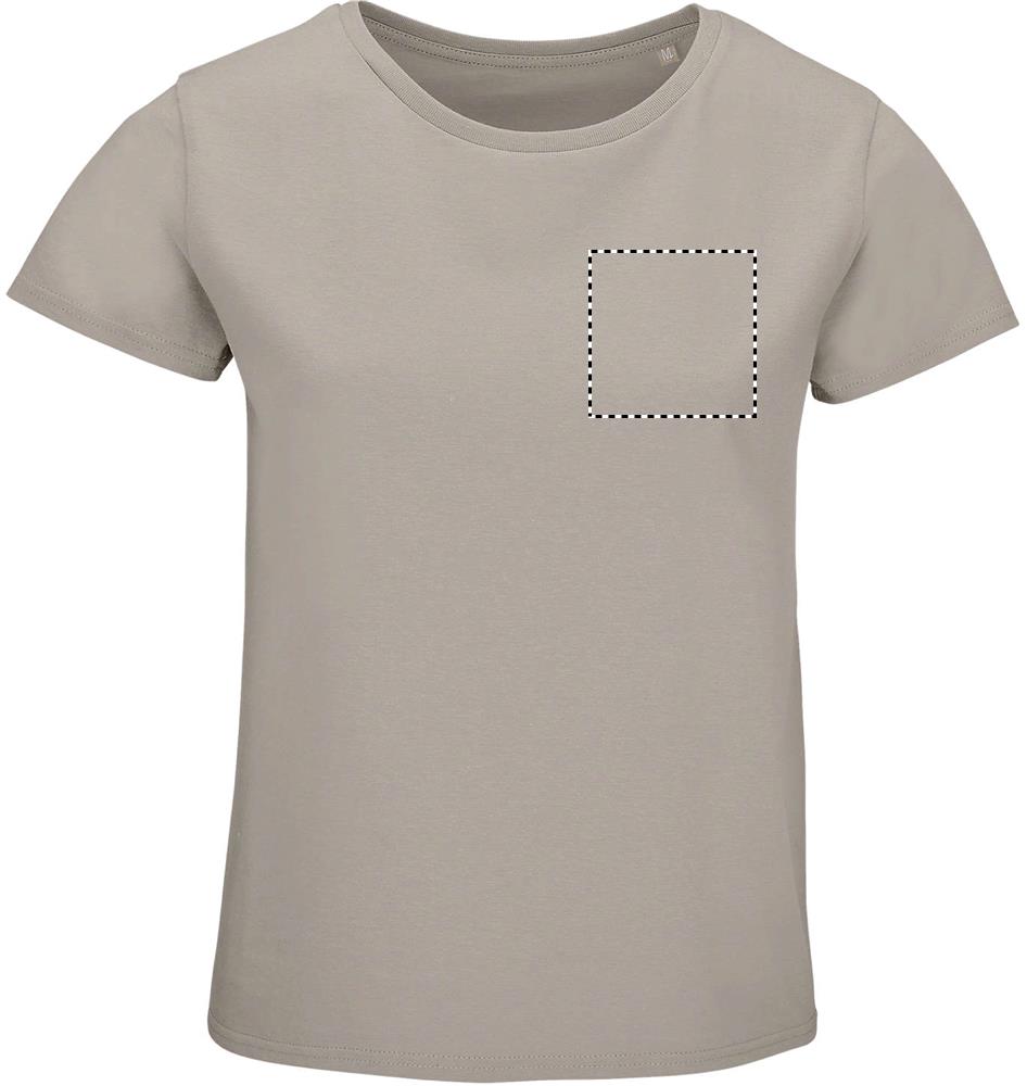 SOL'S PIONEER WOMEN, women's Round-Neck Fitted Jersey T-Shirt, 100% Organically Grown Cotton, Natural Finish For A Softer And Smoother Feel Jersey 175, 100% Cotton Ribbed Collar, Round Neck, Neck Tape, Fitted Cut, Tubular, (1) Ash : 98 % Organic Cotton / 2 % Viscose, (2) Grey Melange : 85 % Organic Cotton / 15 % Viscose. About Sizes Matching, Please Refer To The Size Chart In The Product Documentation Section.