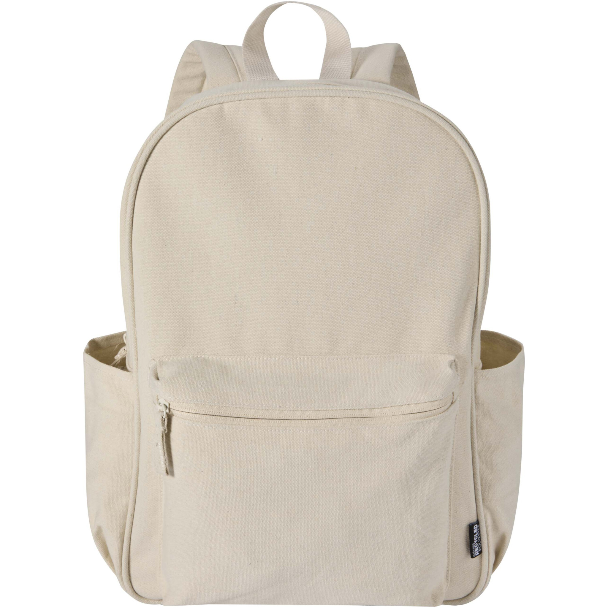 Made from GRS certified recycled water-repellent canvas with a colour-matched RPET lining, the Recanvas city backpack combines style with everyday practicality. It includes a padded 15.6" laptop compartment with an additional padded sleeve, a zipped front pocket, two side pockets, a breathable mesh back, and adjustable shoulder straps for comfort. With a 16-litre capacity, it is ideal for commuting, studying, or day-to-day use.