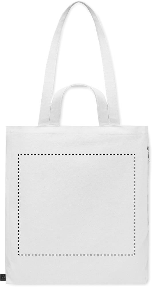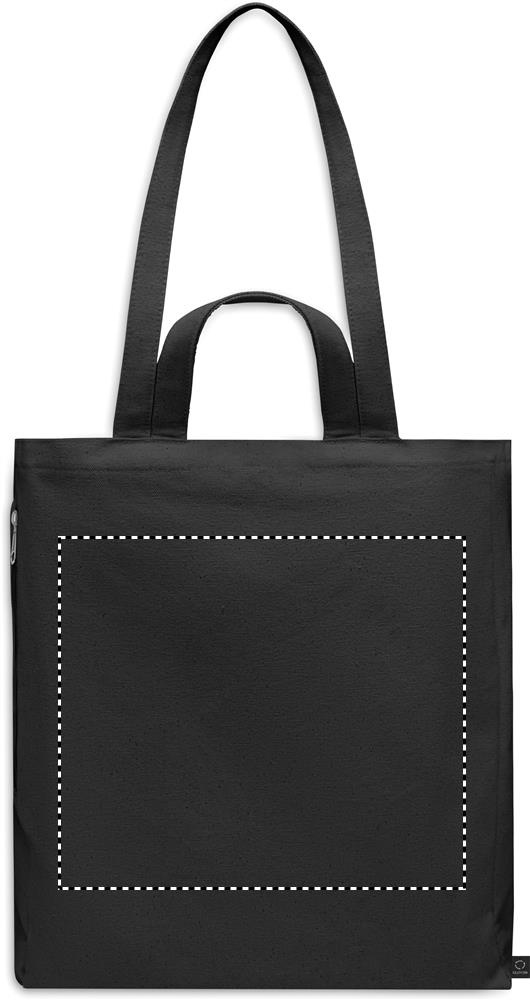 Recycled polycotton shopping or beach bag (70% recycled cotton, 30% recycled polyester) with short and long handles. It has a side zippered pocket. 380 gr/m².