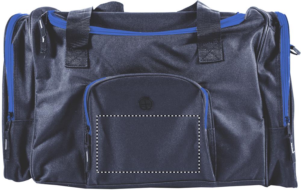 Sports bag in 600D polyester with 2 zippered side compartments and 1 zippered front pocket with earphone eyelet. Detachable and adjustable shoulder strap included.