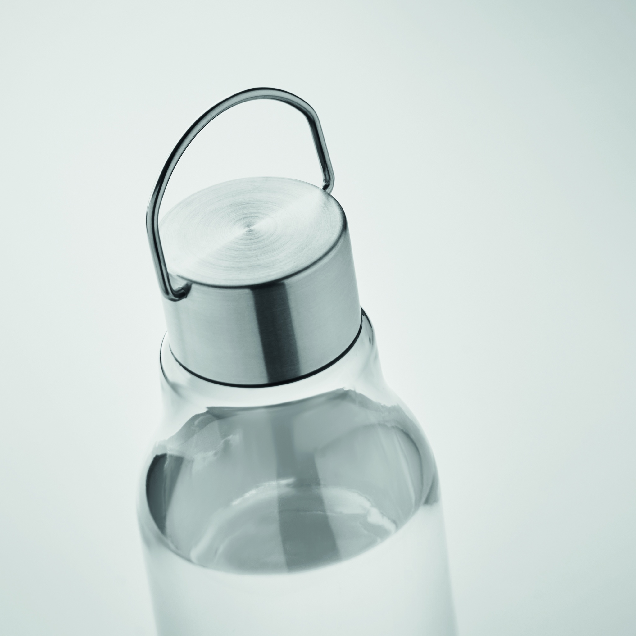 Drinking bottle in Tritan Renew™ which is BPA free with stainless steel handle lid. Leak-free. Capacity: 800 ml. This product is derived from 50% waste plastic using ISCC certified mass balance.