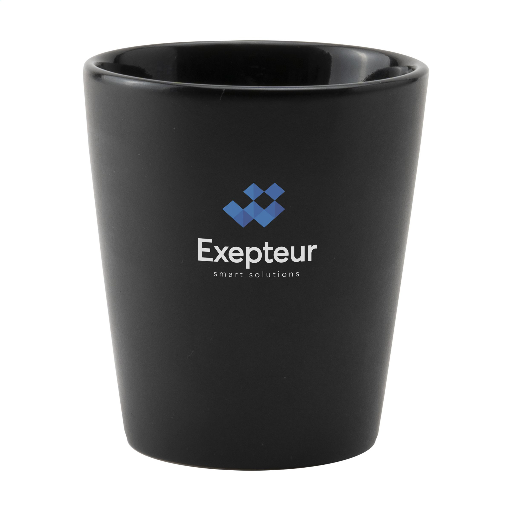 Trendy mug without handle. Made of high-quality ceramics. With matt outside and high-gloss inside. Suitable for all coffee machines. Capacity 190 ml. Dishwasher-safe. The imprint is tested and certified dishwasher-safe: EN 12875-2.