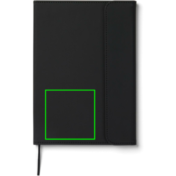 Sleek A5 notebook in a clean touch. Its cover, crafted from 30% recycled matte PU, features a magnetic closure and an integrated pen holder. Within, 80 pages/160 sheets of 70 gsm lined recycled paper, suitable for all your note-taking needs. The paper insert can be replaced, allowing for prolonged use over time. Certified by GRS (Global Recycled Standard), GRS certification guarantees that the entire supply chain of the recycled materials is certified. The total recycled content is based on the overall product weight. This product contains 54% GRS-certified paper and 5 % GRS-recycled PU.