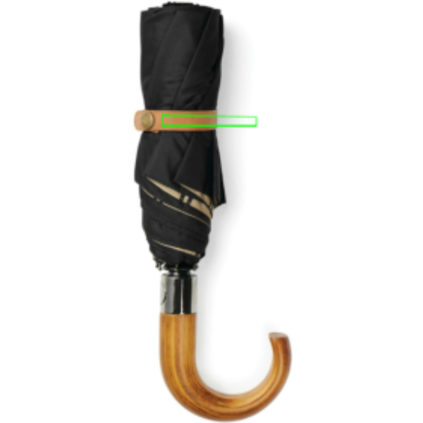 Stay dry in style on the go with our classic and understated 21-inch umbrella. The double-layer 190T recycled pet fabric provides ample protection against rain, while the beautiful inside lining adds a touch of elegance to the design. The umbrella features fibreglass ribs and frame, ensuring durability and longevity. The umbrella handle is made from composite wood, adding a touch of sophistication to the design. The umbrella also features an auto-opener for convenience and a manual closing option. The storing pouch in matching fabric adds an extra layer of protection when not in use. Features AWARE™ tracer technology, validating the genuine use of recycled materials, emphasising our commitment to responsible sourcing. Including FSC®-certified kraft packaging.
