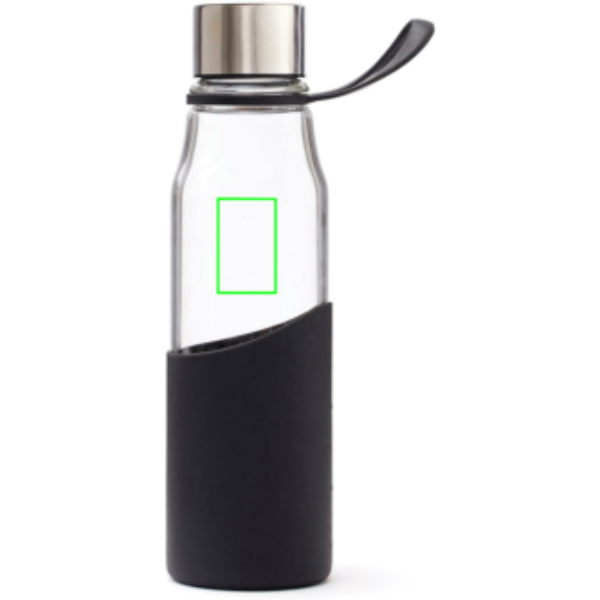A neat waterbottle in glass with a silicon sleeve. The sleeve gives you a nice grip and protects the bottle from outer impact. Simple and stylish design. The bottle is made with borosilicate glass, a type of glass that is more resistant to thermal shock than ordinary glass. Borosilicate is a highly durable and qualitative material that lasts and withstands most impacts.