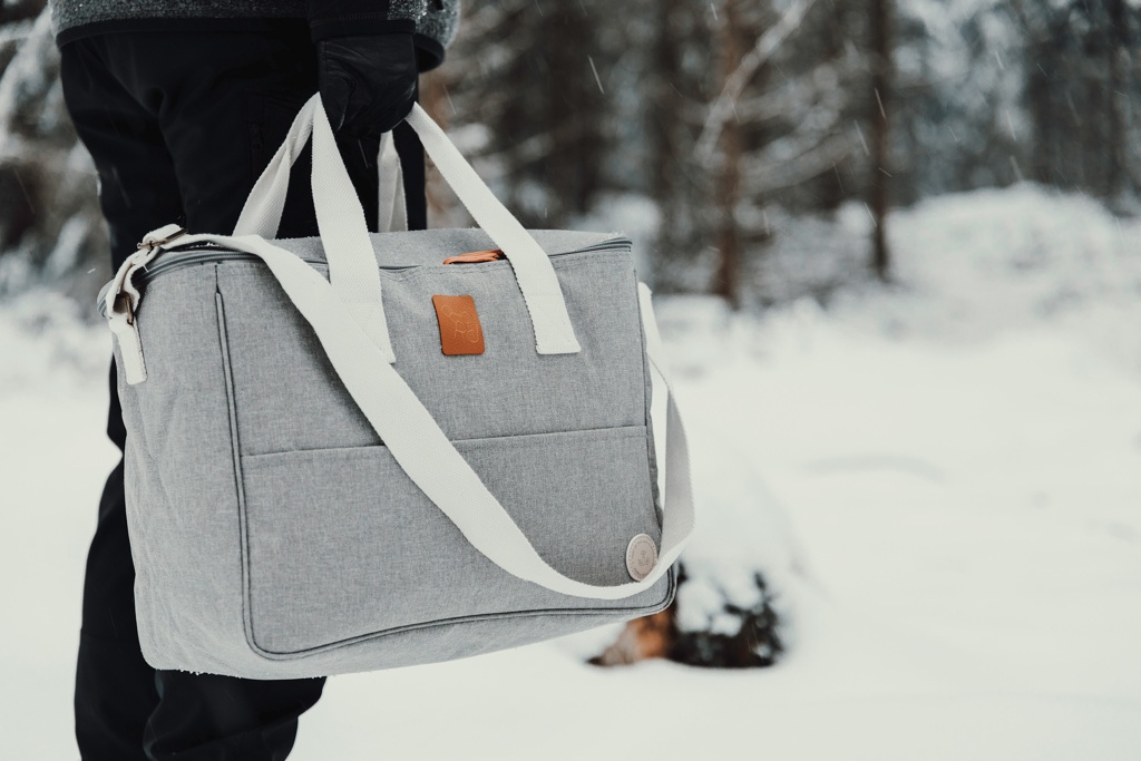 This spacious cooler basket with a lid means the end to the old boring plastic versions. The cooler bag is in a melange fabric accompanied with PU details which makes it as fancy as a normal bag. The PEVA lining keeps cool for a long period of time, and is also easy to clean. Both with shoulder strap and handles.