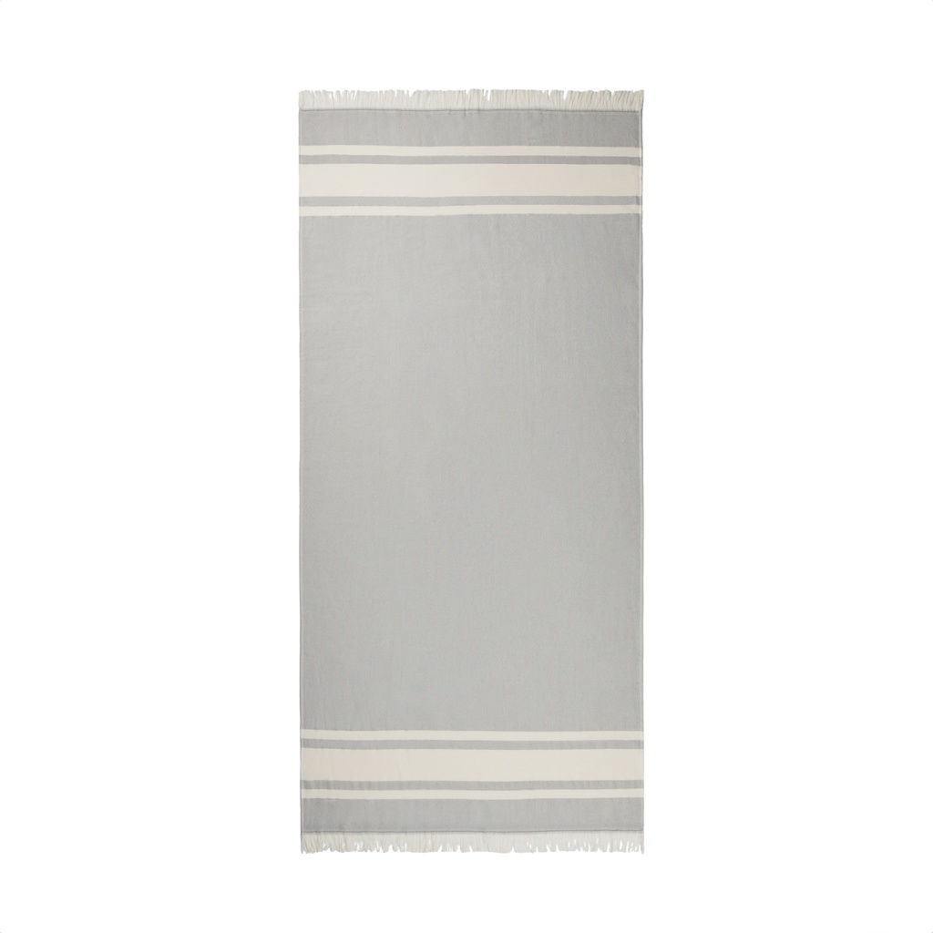 Hammam towel designed with two different types of texture, one side in terry and the other side in plain weave. The two-sided design makes this towel the ultimate companion when you're at the beach, by the pool, or when on an adventure outdoors. It has an excellent absorbency and dries up quickly. The towel is crafted from 75% cotton and 25% polyester and has a thickness of 360 gsm. Measurements: 180x80cm, fringes in 5cm excluded. OEKO-TEX® STANDARD 100. 09.HIN.68091. Hohenstein HTTI.
