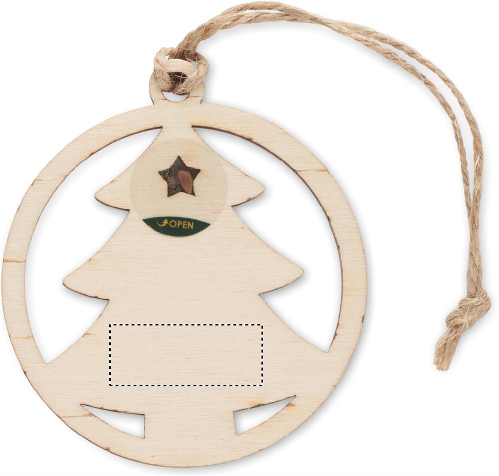 Wooden tree shaped decoration hanger with jute cord including spruce seeds. Presented in kraft envelope. Made in EU.