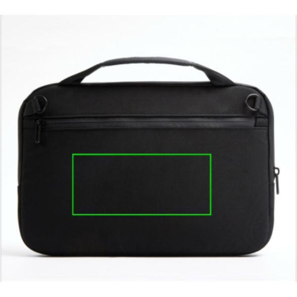 The XD Design 16" Laptop Bag offers reliable laptop protection. Crafted from R-pet 1200D fabric and textured PU, it features a water-repellent finish. The top handle and shoulder strap provide versatile carrying options, while the rear pocket offers convenient storage for essential items. The waterproof zipper and textured fleece lining add an extra layer of resilience. Made from R-pet fabric with the AWARE™ tracer. With AWARE™, the use of genuine recycled fabric is guaranteed. 16% recycled content.