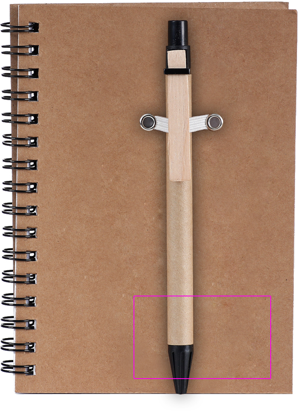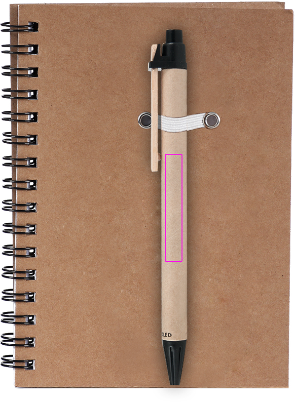 Taaskasutatud papist märkmik 120 leheküljelise taaskasutatud paberi ja sinise tindiga pastapliiatsiga. Trükime teie logo kaanele.