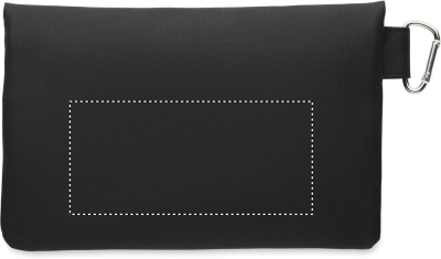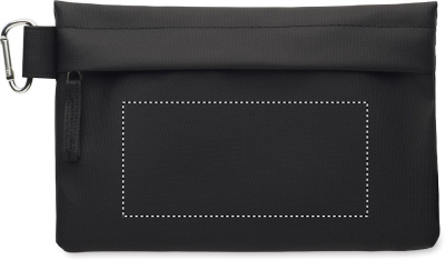 Must lukuga kott PU-kattega 600D RPET polüestrist.