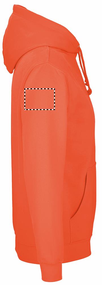 SOL'S CONDOR, Unisex kapuutsiga pusa, 80% puuvill – 20% taaskasutatud polüester Grs sertifikaadiga. Harjatud fliis 280, sissetõmmatavate varrukatega, 1X1 soonikuga varrukatega, krae ja alläärega. Kängurutasku, voodriga kapuuts, toon-toonis pingutusnöör ja metallist aasad. Suuruste sobitamise kohta vaadake suuruste tabelit tootedokumentatsiooni jaotises.