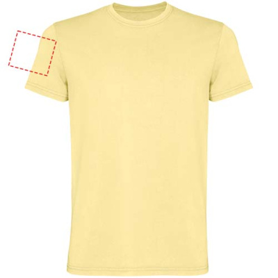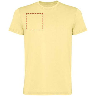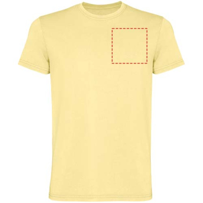 Kollane lühikeste varrukatega meeste T-särk. Happepesu viimistlusega. 1x1 soonikkoes ümara kaelusega. Toon-toonis katteõmblus.