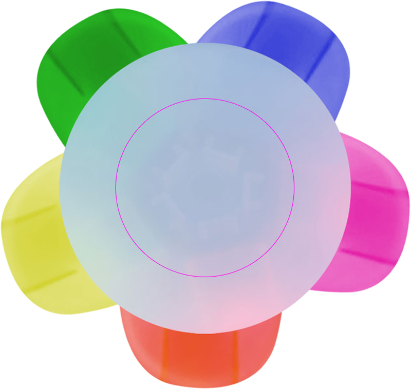 Viie erineva värviga highlighter ja keskel suur reklaampind. Trükime teie logo esiletõstja keskele.