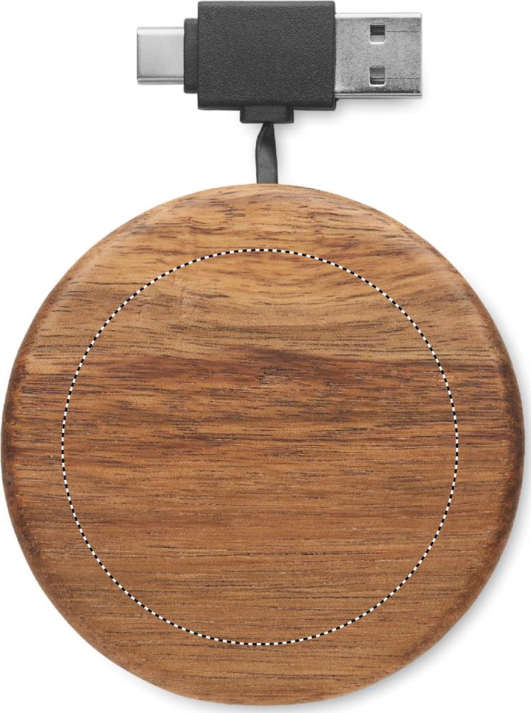 Logo trade reklaamkingi pilt: Juhtmeta akaatsiapuidust laadija 15W