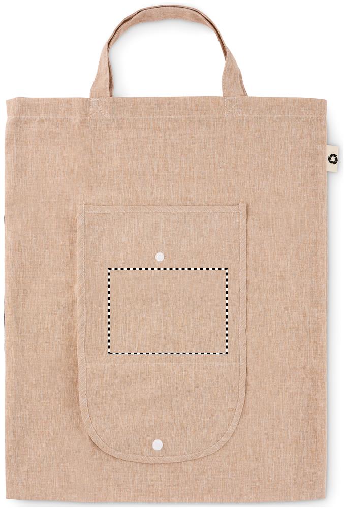 Kokkupandav 2-tooniline taaskasutatud puuvillast ja taaskasutatud polüestrist pikkade sangadega ostukott (20%/80%). u. 140 gr/m². See üksus võib pärast printimist kokku tõmbuda.